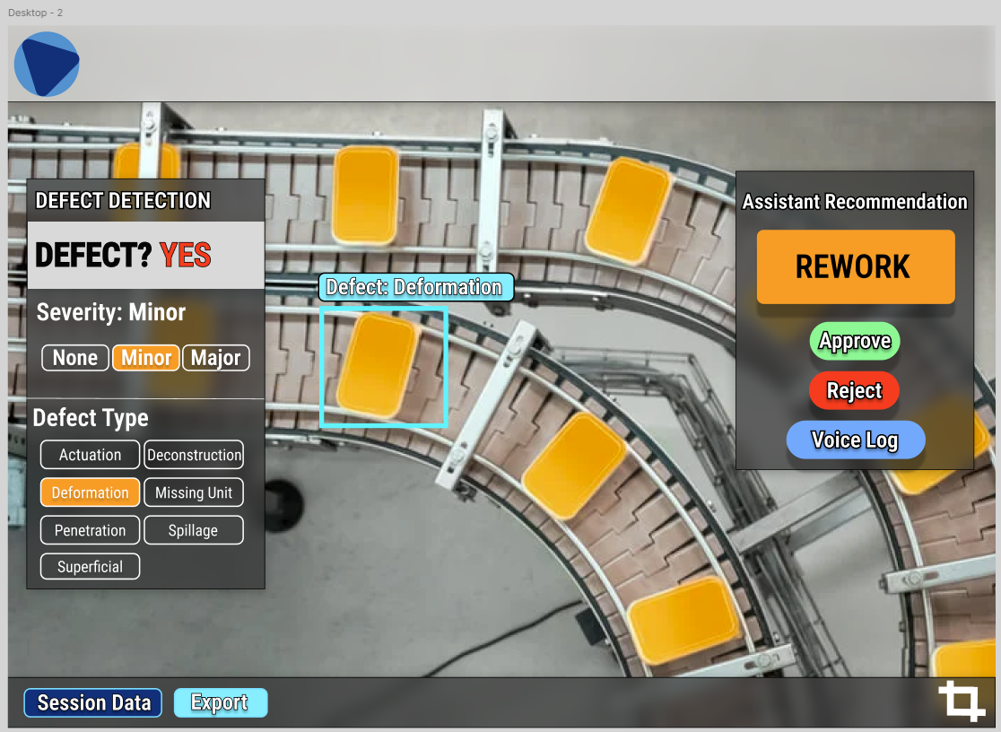Solution: My team created a camera first desktop, mobile, and Mixed Reality application which focused on removeing distractions from the operator while performing quality assurance inspections. The application uses computer vision to identify defects in products and provides real-time feedback to the operator as well as informing the operator what the correct course of acion is when a defect is detected. We used an AI pipeline involving Yolo v11 to crop products out of the overall image, then we passed those product images to a custom Vision Transformer trained on the Kapput Dataset. When a defect was detected, we passed the VIT output to a custom GPT 5 mini agent to make the final decision on how to proceed. The application was built using Next.js and TailwindCSS for the desktop and mobile app while the MR app was built on Mixed Reality Toolkit 3 and Meta Spatial SDK.